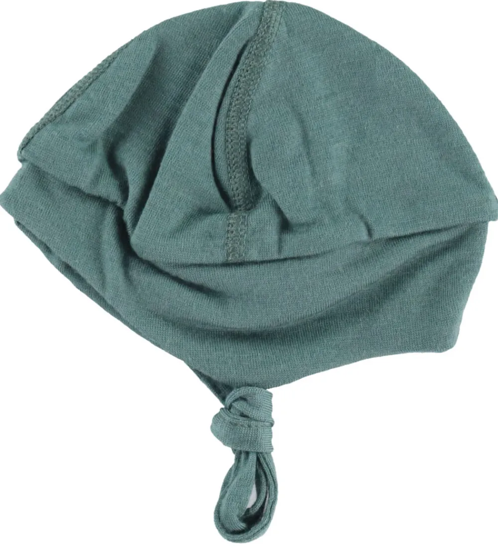 Dejlig Joha babyhjelm i ensfarvet grøn uld.