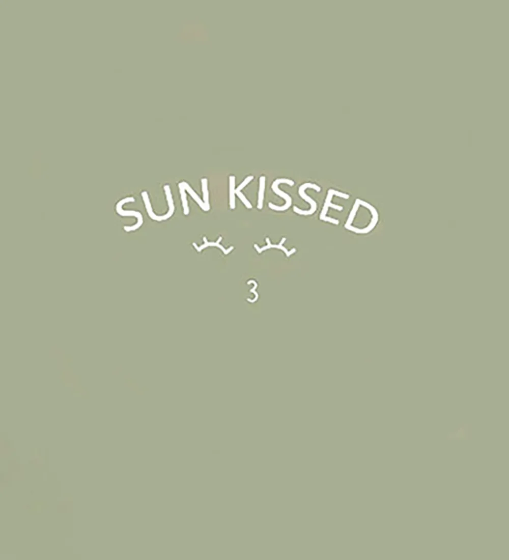 Smart Petit Crabe badebluse i støvet grøn med print af teksten “Sun Kissed” fortil.