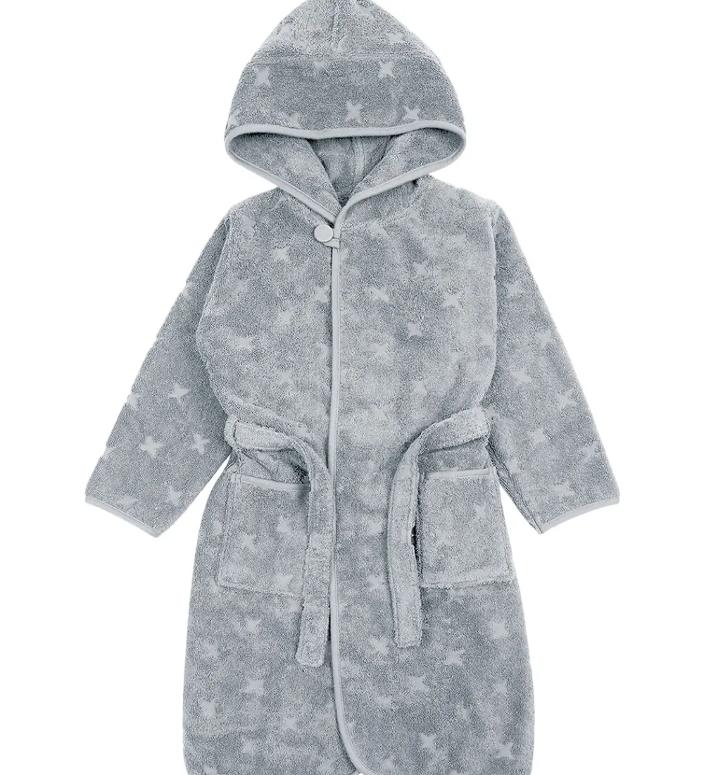 Lækker Müsli Badekåbe i lysegråt frotté med stjerner.