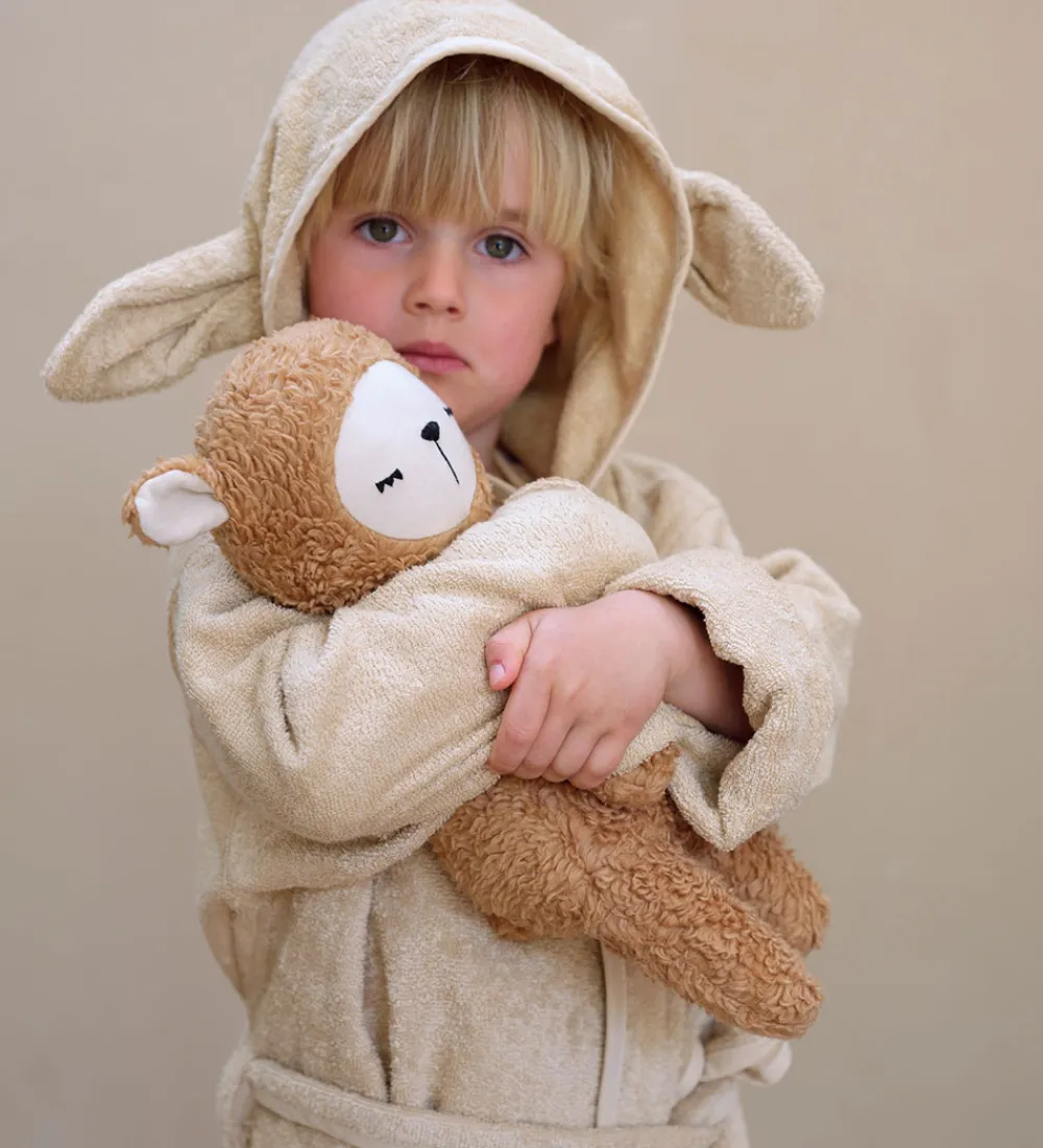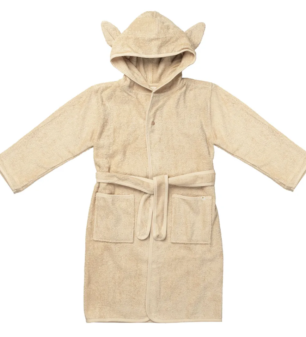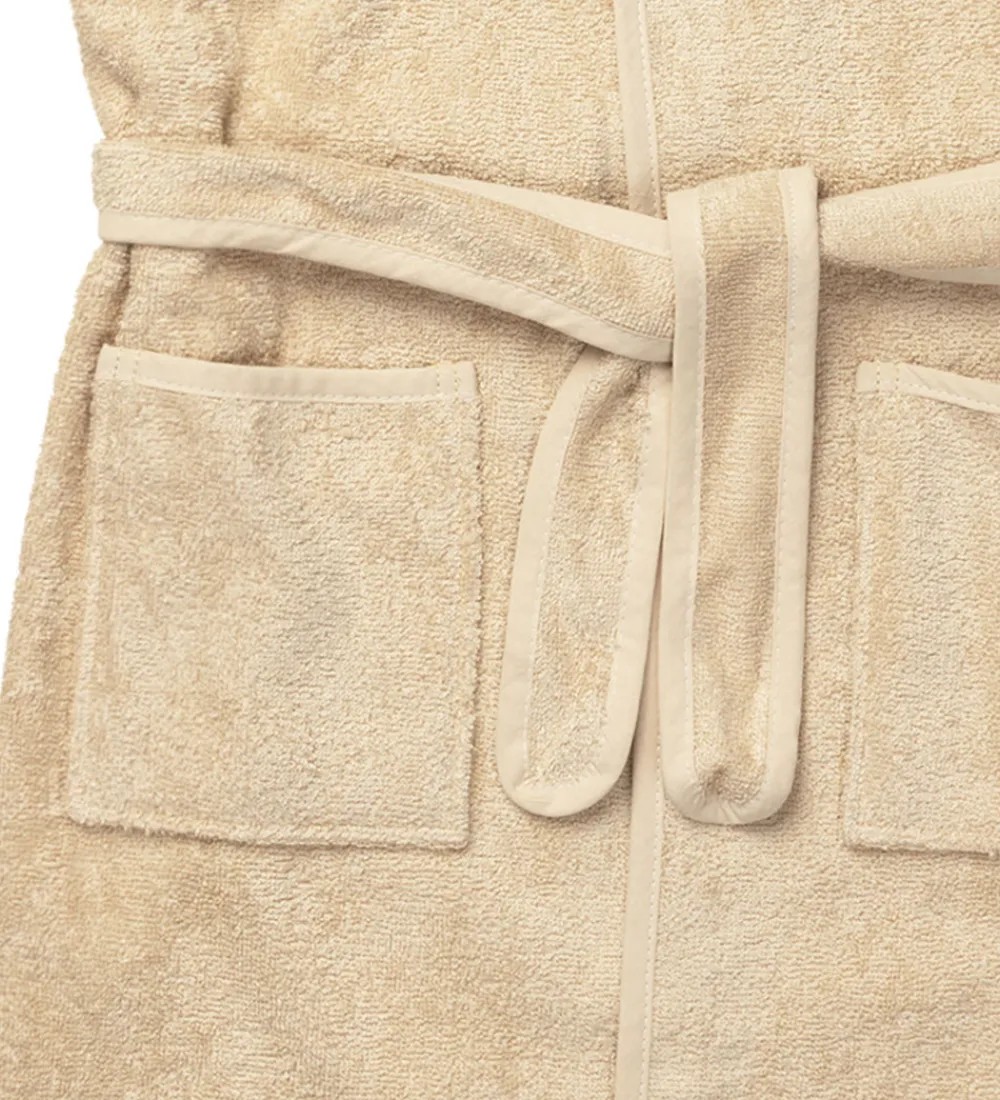 Sød Fabelab badekåbe i beige frotte med cremehvide kanter.