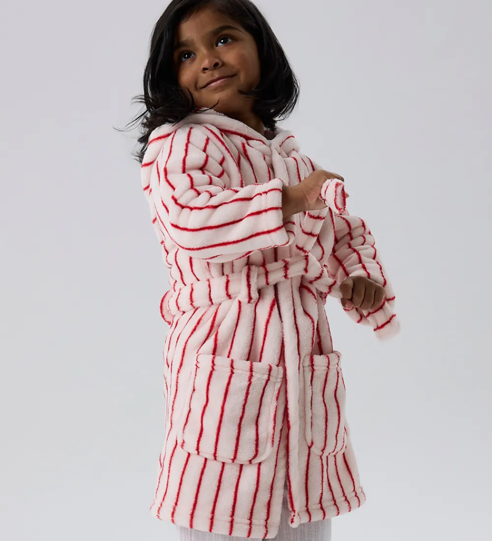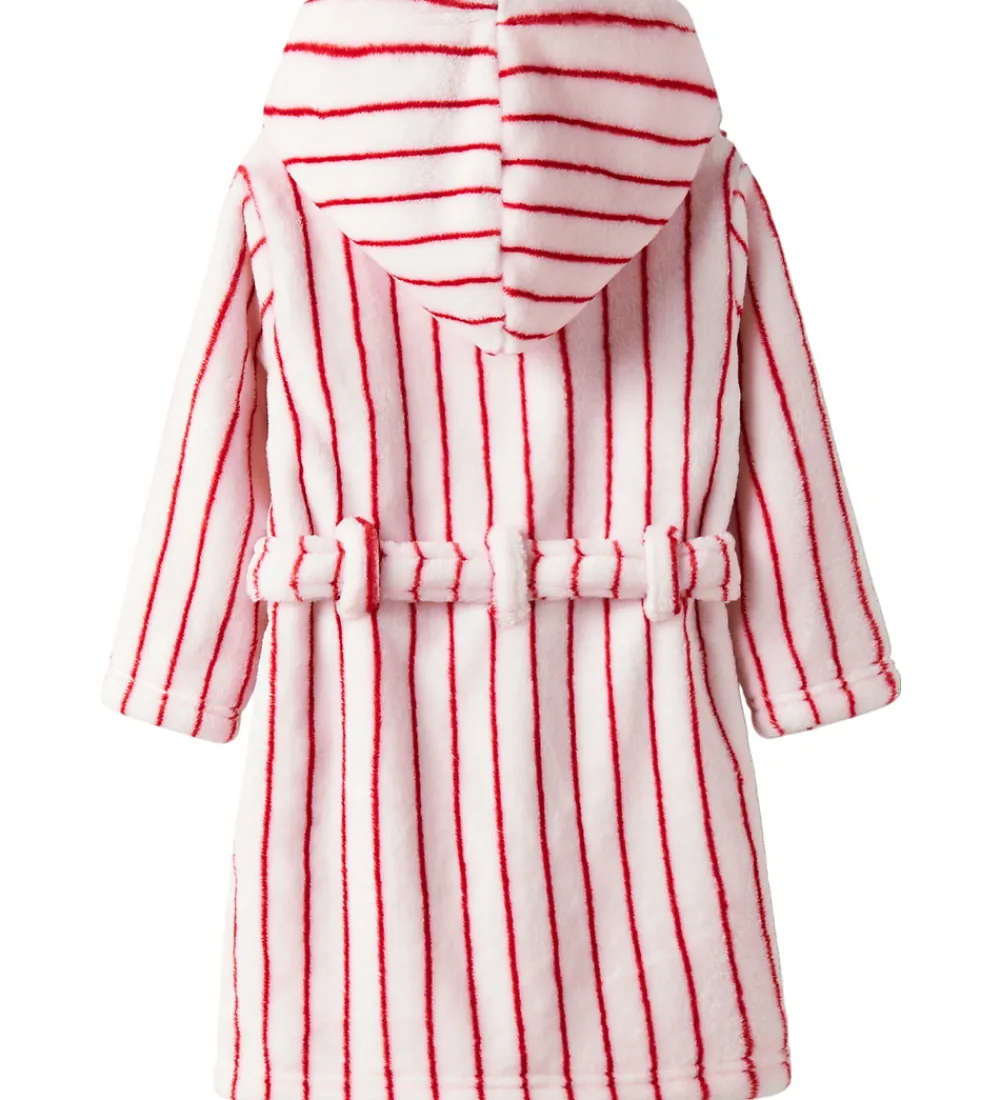 Flot Name It badekåbe med et stribet design i hvid og rød. Badekåben har en meget blød plysstruktur.