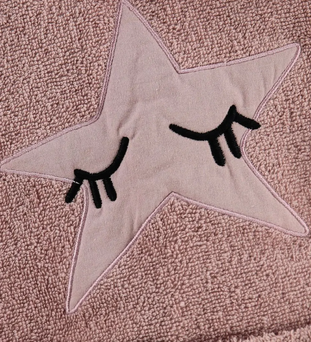 Sød Nørgaard Madsen badekåbe i rosa frotté med en fastsyet hætte og en dekorativ stjerne på ryggen.