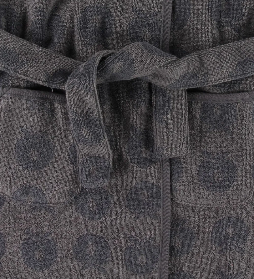 Blød og lækker Småfolk badekåbe i grå med et allover print af de klassiske Småfolk-æbler.