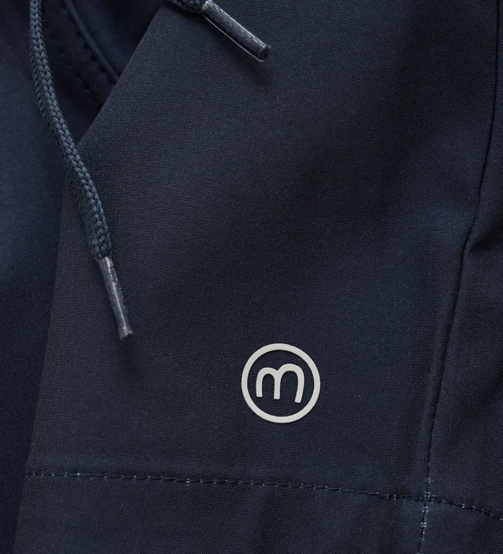 Funktionelle Minymo badeshorts i navy, med et logo på venstre lår. Materialet er ensfarvet og glat, hvilket skaber et enkelt og stilrent udtryk.