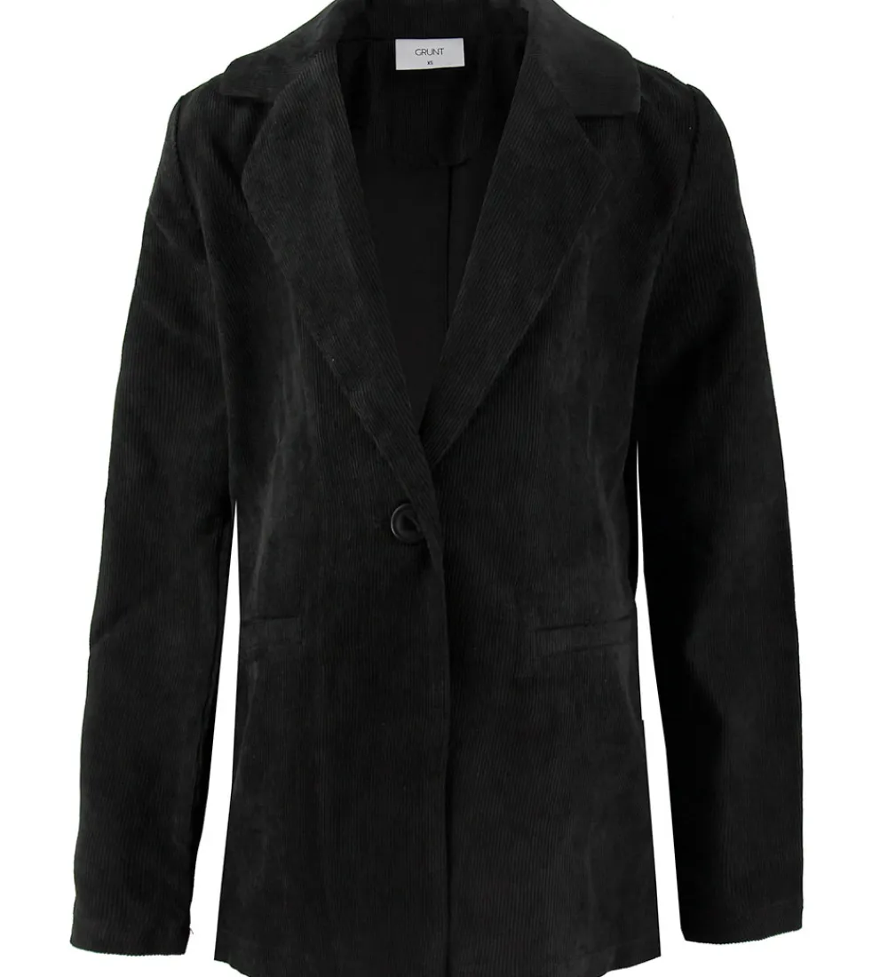 Grunt blazeren er figursyet, og har en klassisk revers og den lukkes med en enkelt sort knap. På hver side af knaplukningen er en dekorativ snydelomme.