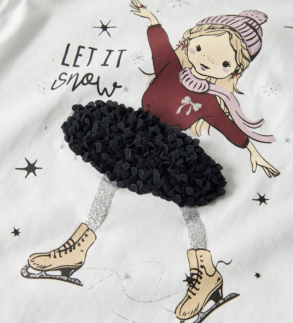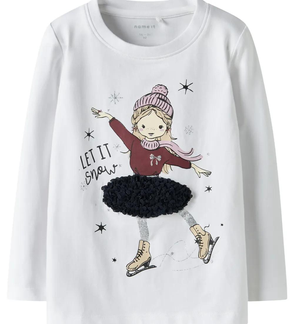Blusen har et flot print af en skøjteløber i farverige nuancer og teksten “Let it snow”. Rund halsudskæring bidrager til et klassisk look. Fin detalje med en nederdel i 3D-effekt, som giver et unikt udseende. Name It blusen kombinerer kreativitet med praktisk design.