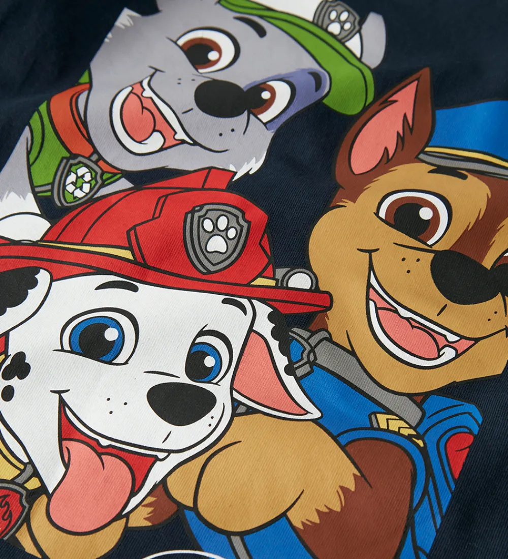 Smart Name It bluse med lange ærmer i navyblå med et farverigt print af Paw Patrol på fronten. Blusen har en rund halsudskæring med en smal ribkant.