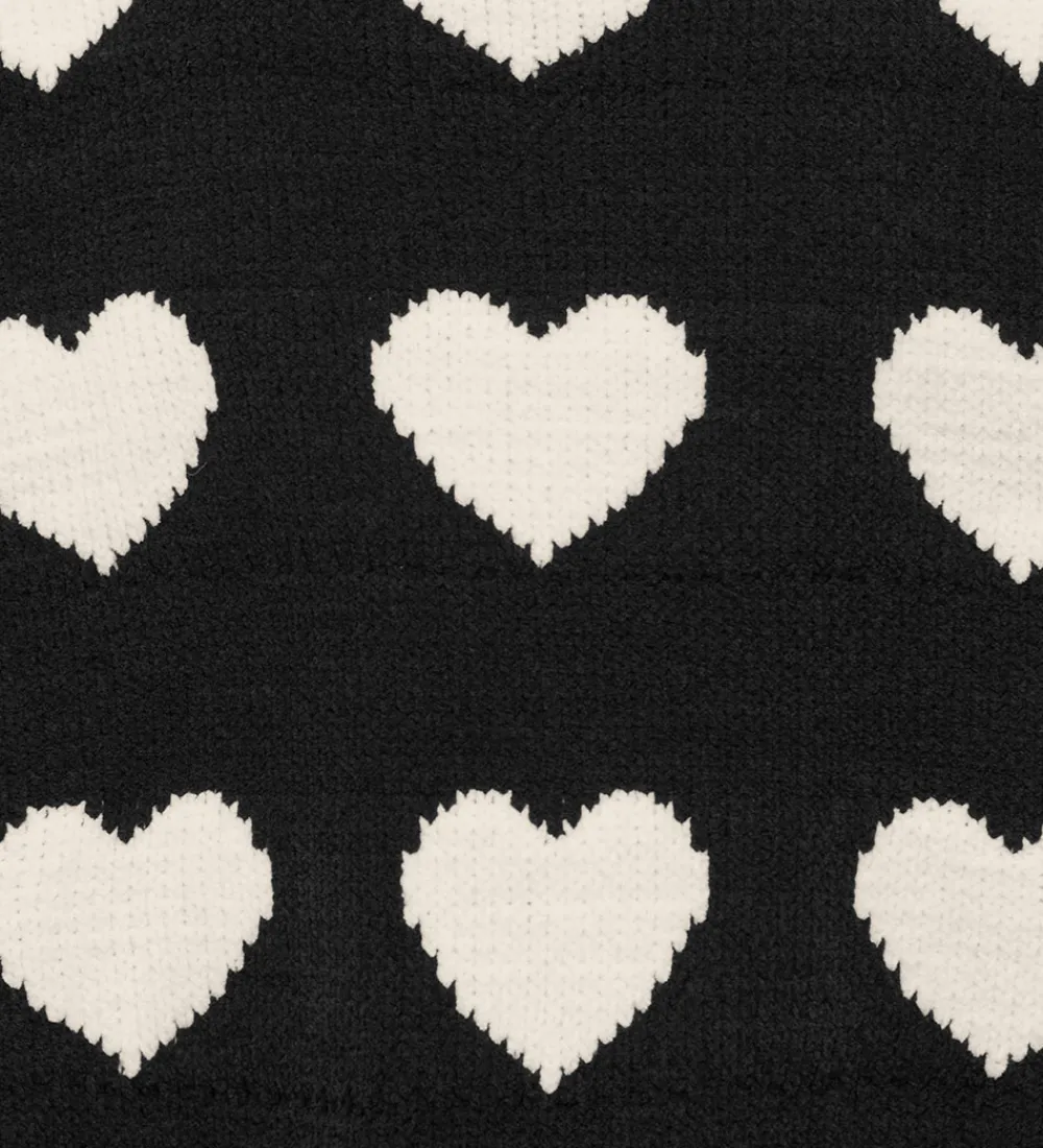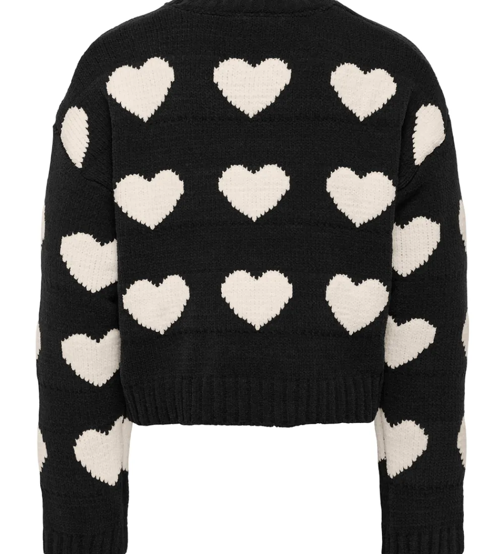 Flot Kids Only bluse i sort med et iøjnefaldende all-over mønster af hvide hjerter. Blusen har lange ærmer og en rund halsudskæring. Ribkanter ved ærmerne og i bunden giver en struktureret finish, som fremhæver det moderne design fra Kids Only.