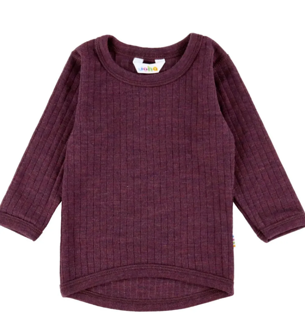 Dejlig Joha bluse med lange ærmer i en dyb, lilla farve og med et flot ribmønster.