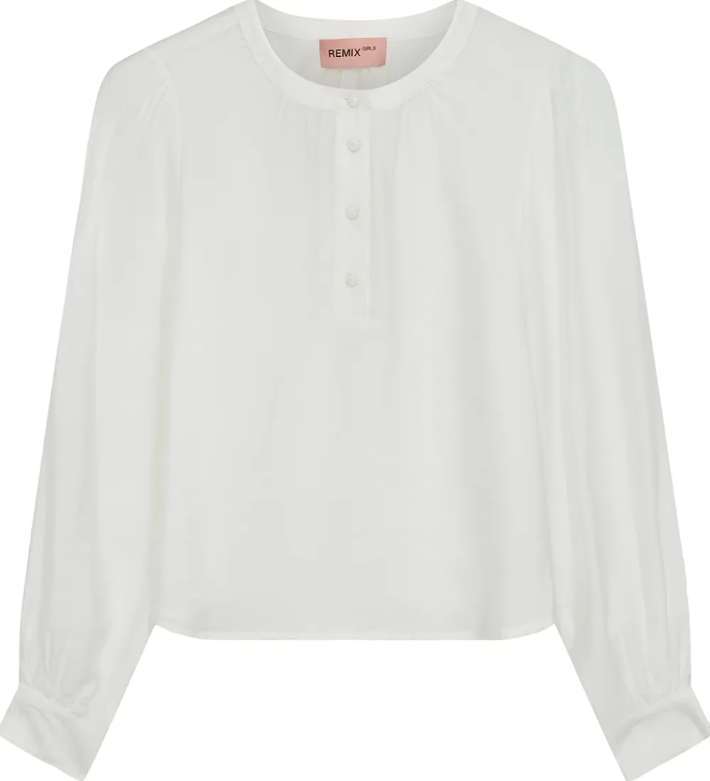 Smuk Designers Remix bluse i ensfarvet hvid.