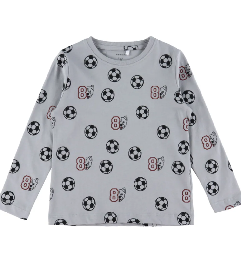 - Støvet blågrå med print af navyblå fodbolde, 8-taller og hunde