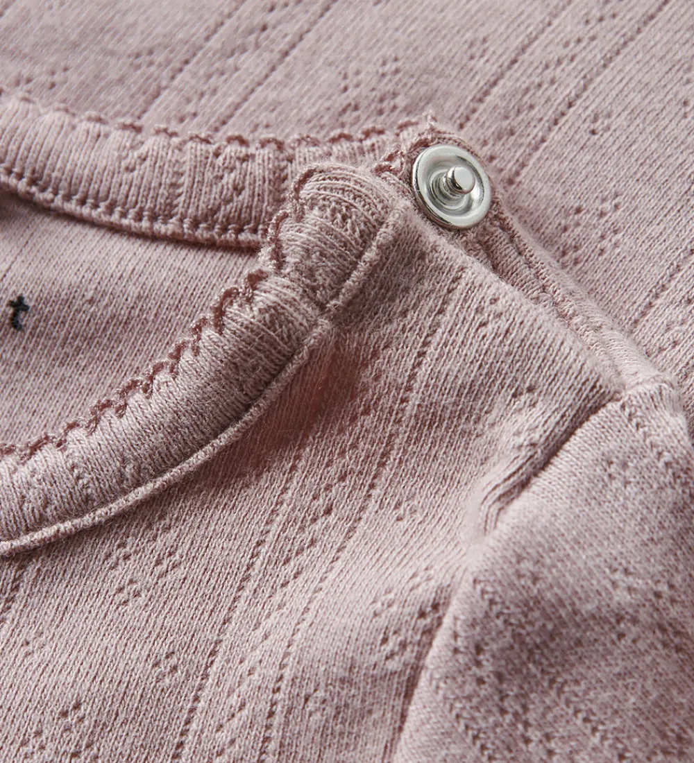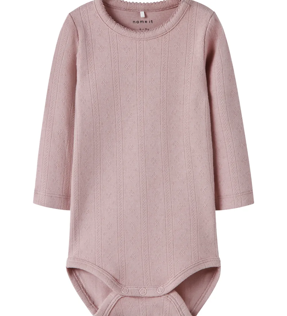 Elegant Name It body med en delikat rosa farve og lange ærmer og med et fint hulmønster.