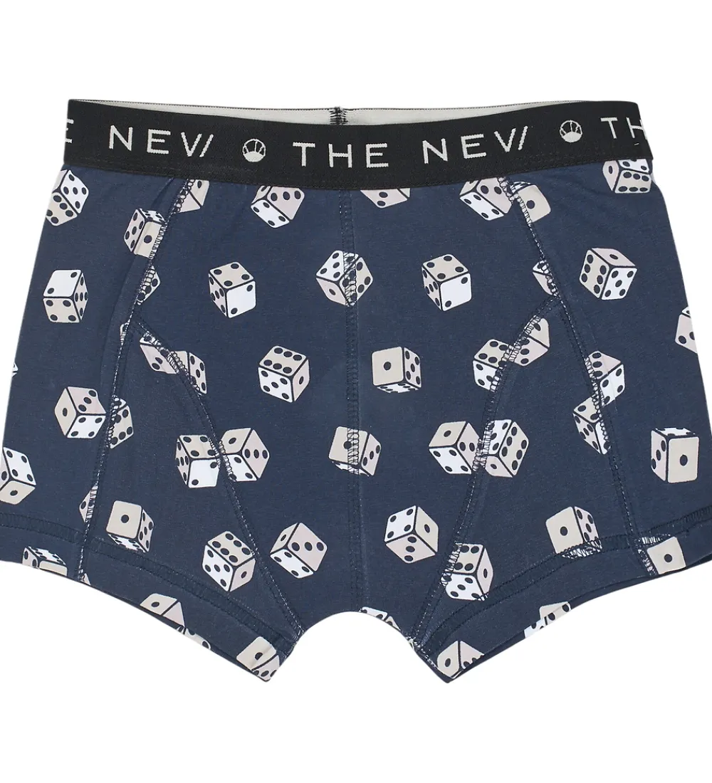 Charmerende boxershorts fra The New i en pakke med to par. Det ene par har en ensfarvet navyblå nuance, mens det andet par prydes af et dekorativt print med terninger.