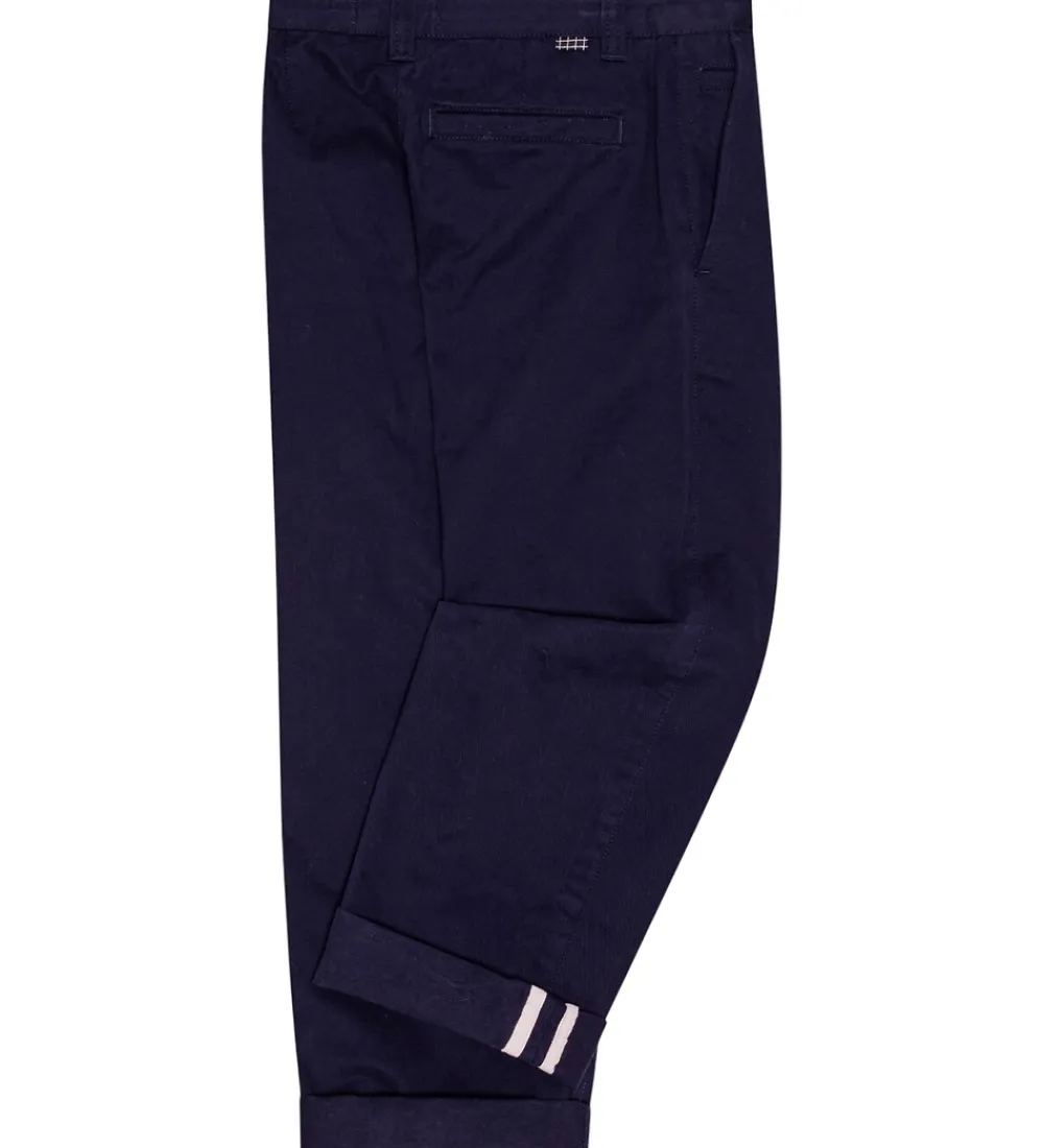 Elegante bukser fra Molo i en dyb marineblå farve. Molo bukserne er designet med en justerbar talje og har praktiske bæltestropper. De er udstyret med skrå, åbne sidelommer, en lille møntlomme og en paspoleret snydelommer bagpå. Bukserne er designet i relaxed fit, som passer perfekt til både hverdag og fest.