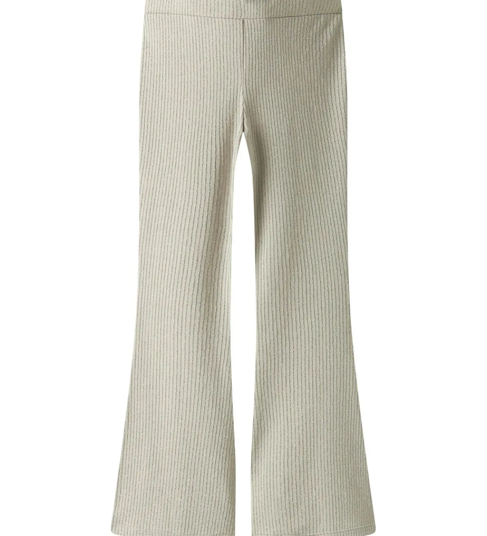 Flotte bukser fra Name It i en lysebeige farve med en sølvfarvet stribestruktur. Name It bukserne har en behagelig pasform med elastisk talje, der sikrer ekstra bevægelsesfrihed.