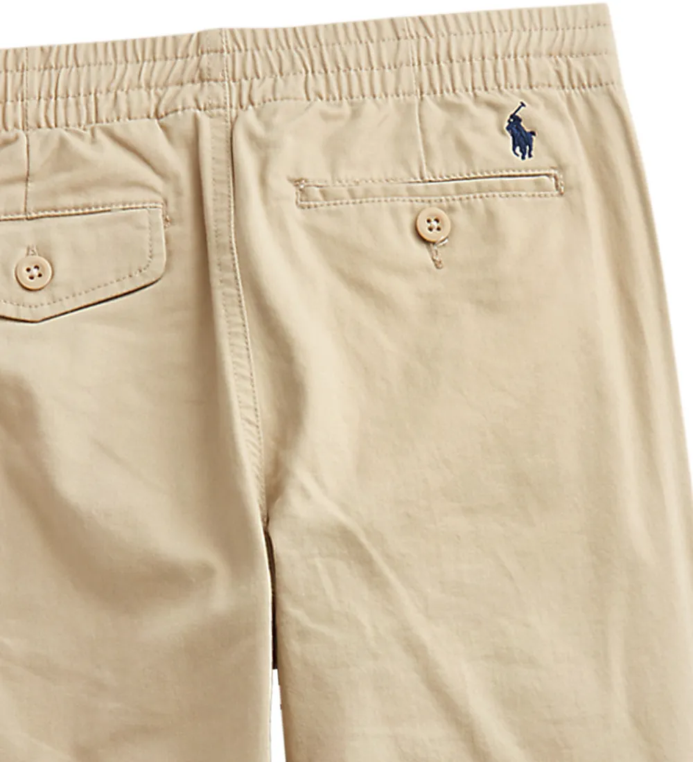 Polo Ralph Lauren bukserne har lange ben, og i livet har de en bred elastikkant, som kan strammes ind på indersiden med en hvid snøre. Bukserne åbnes med en knap og en lynlås, og fortil er der praktiske lommer. Bagpå er der to lommer, som lukkes med en knap.