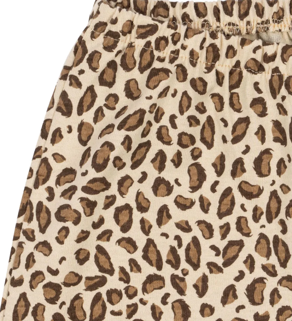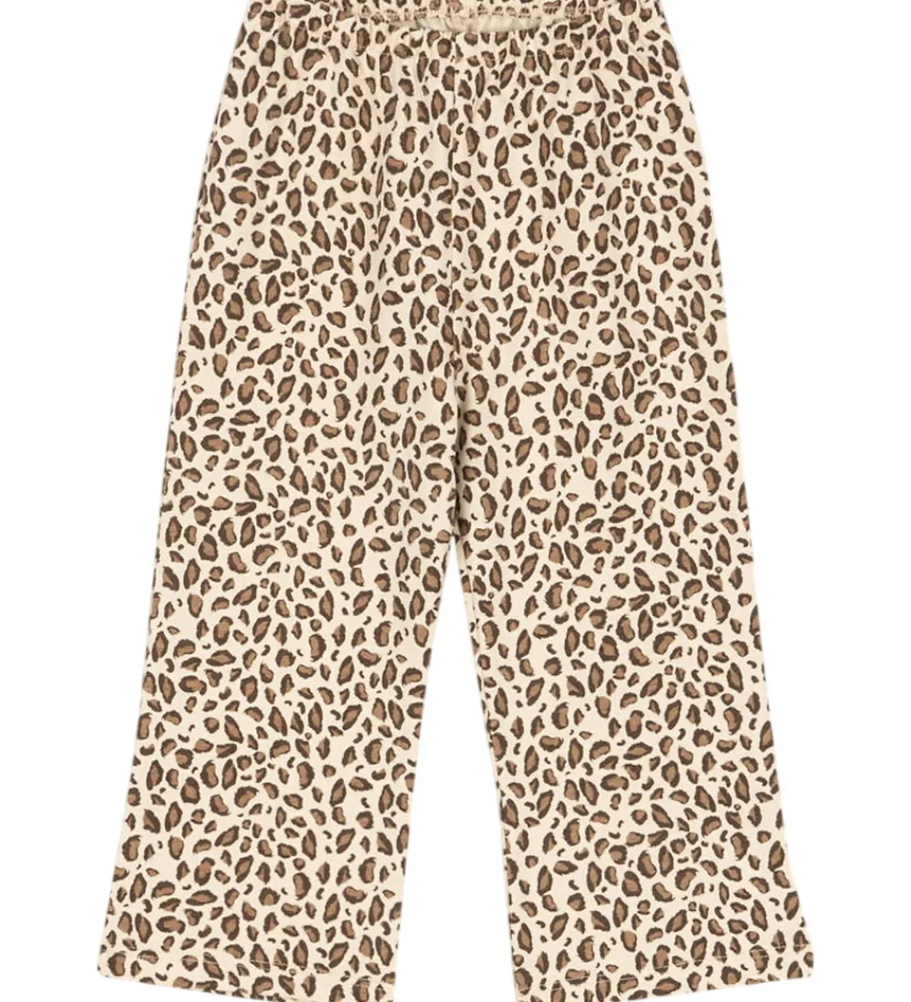 Flotte bukser fra Konges Sløjd med et iøjnefaldende leopardmønster i brune og beige nuancer.