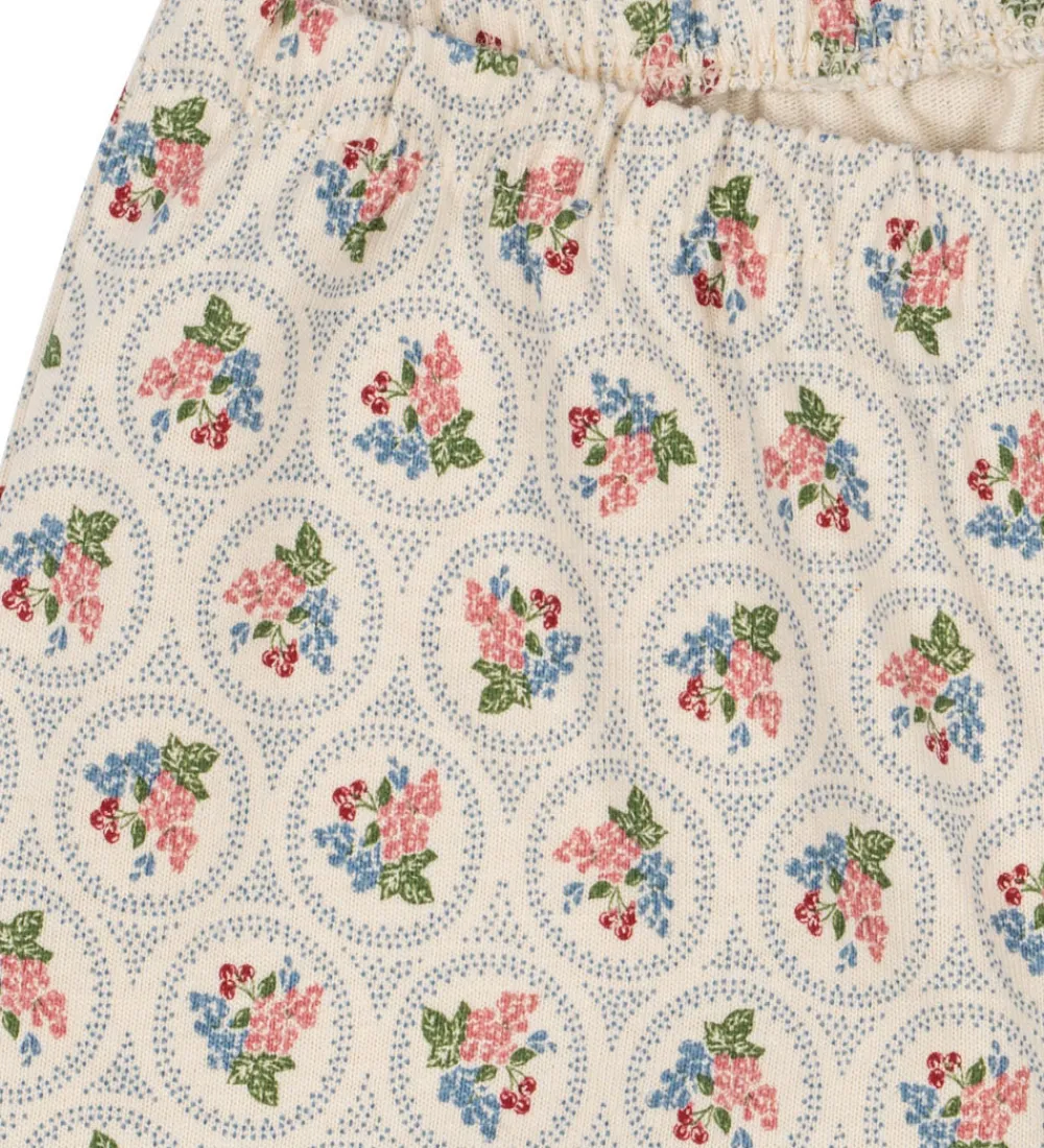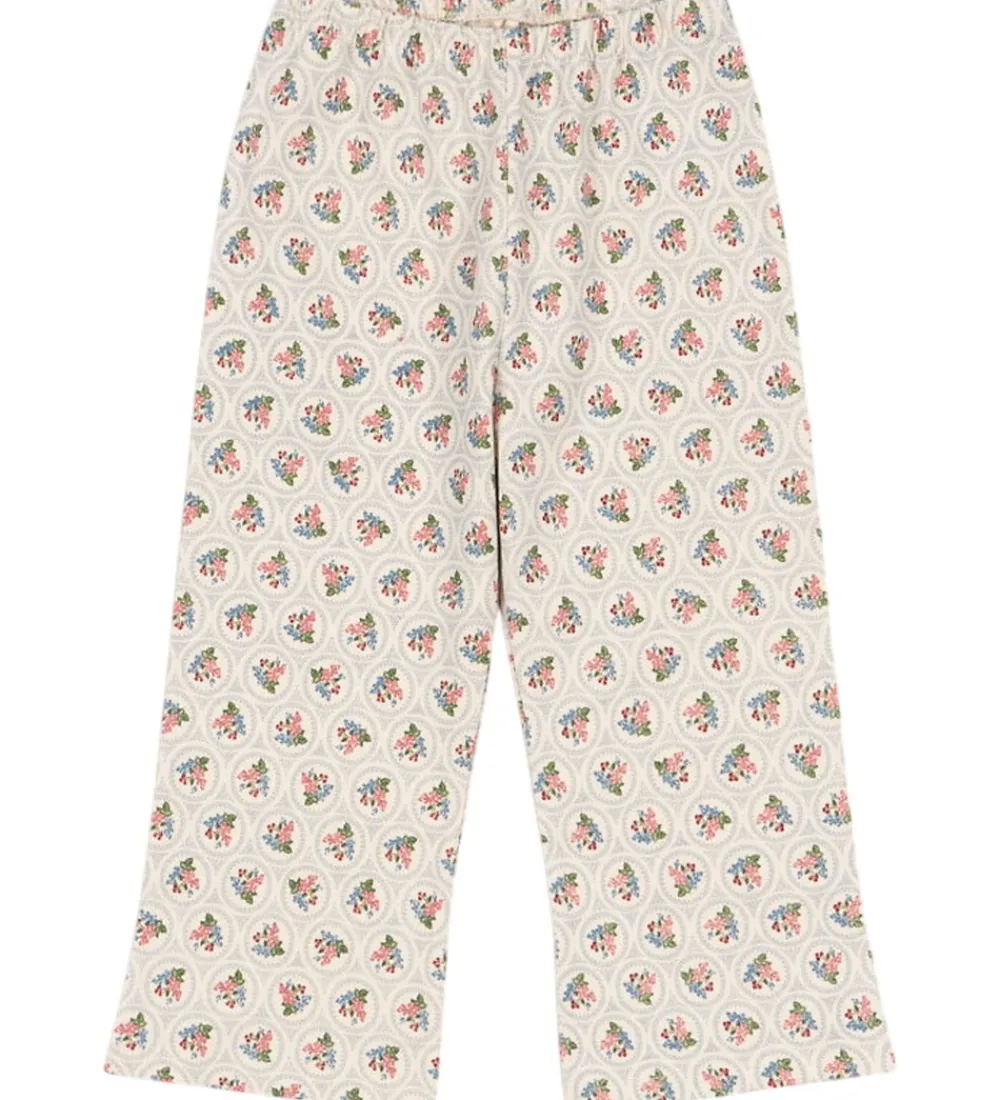 Smukke bukser fra Konges Sløjd i cremehvid med et delikat blomstermønster i røde, blå og grønne nuancer.