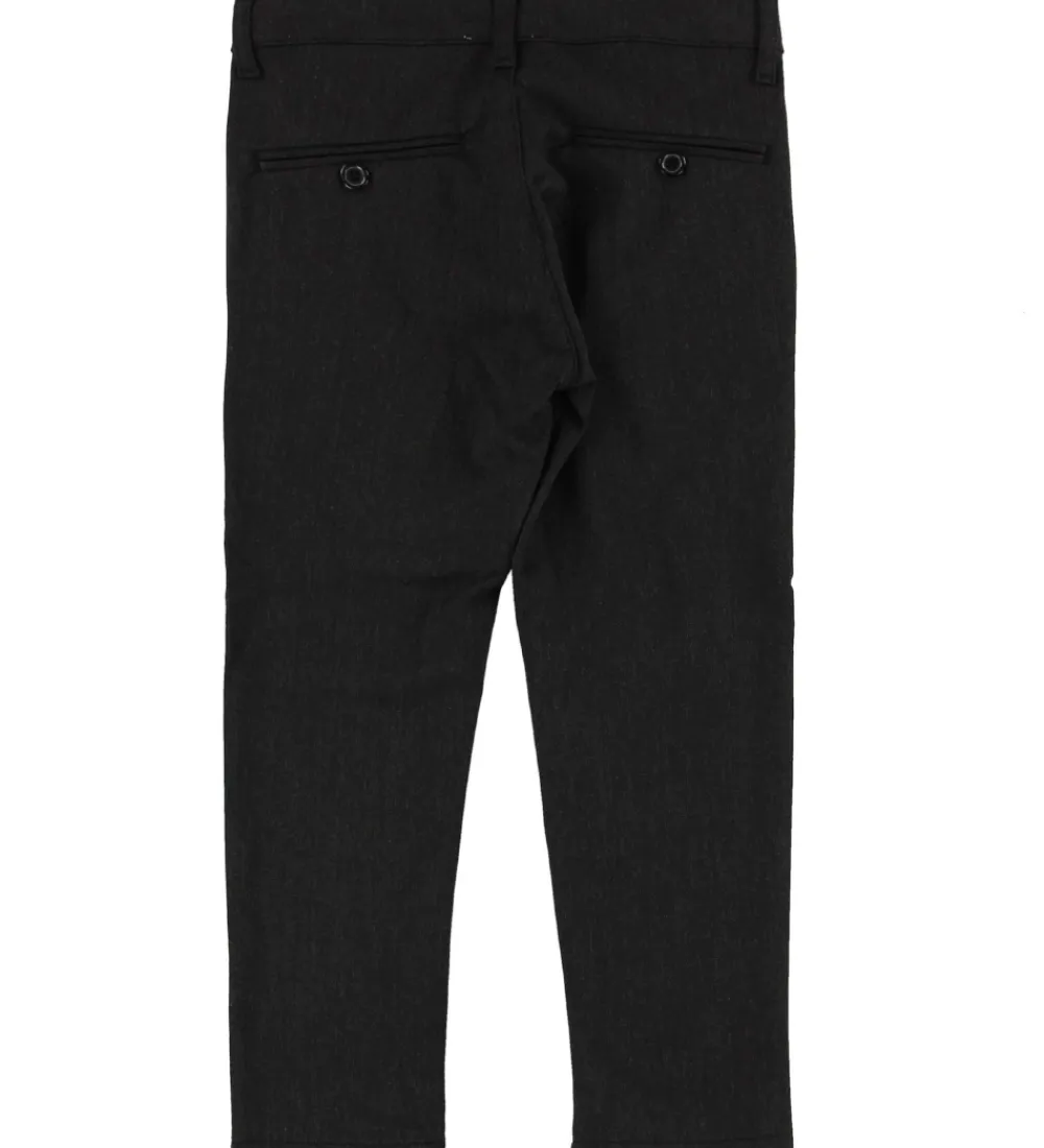 Grunt bukserne har lange ben, og de har indvendige justerbar knapper og bæltestropper i livet. På fronten er der to åbne lommer og bagpå er der to snyde lommer. Bukserne åbnes på fronten med en knap og en lynlås.