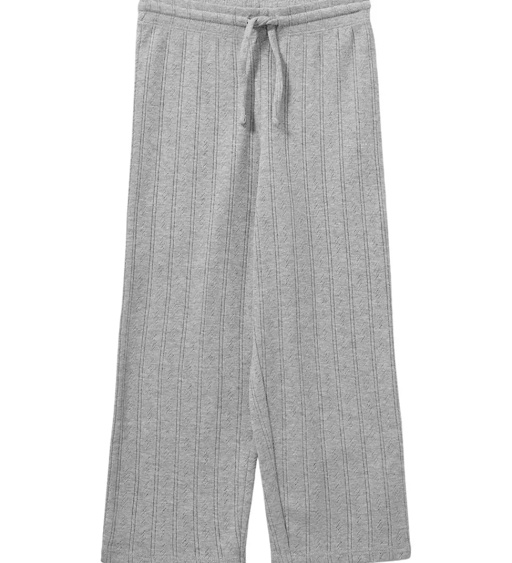 Stilrene bukser fra Sofie Schnoor i en meleret, lysegrå nuance med et flot hulmønster. Sofie Schnoor bukserne har en elastisk talje med justerbare snører, der sikrer en behagelig pasform.