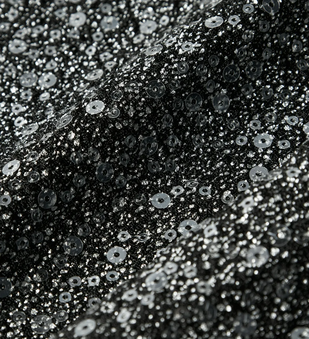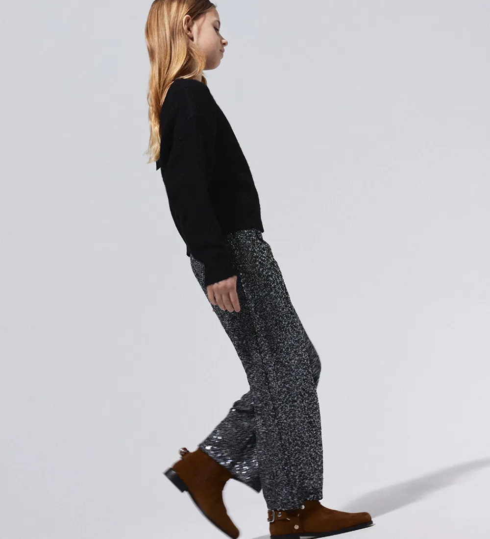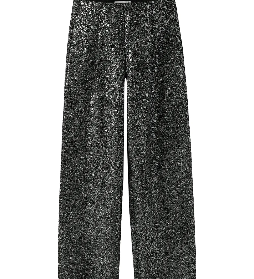 Flotte bukser fra Name It i sort med sølv glimmer og palietter. Name It bukserne har en løs pasform med elastik i taljen, der giver et behageligt fit.