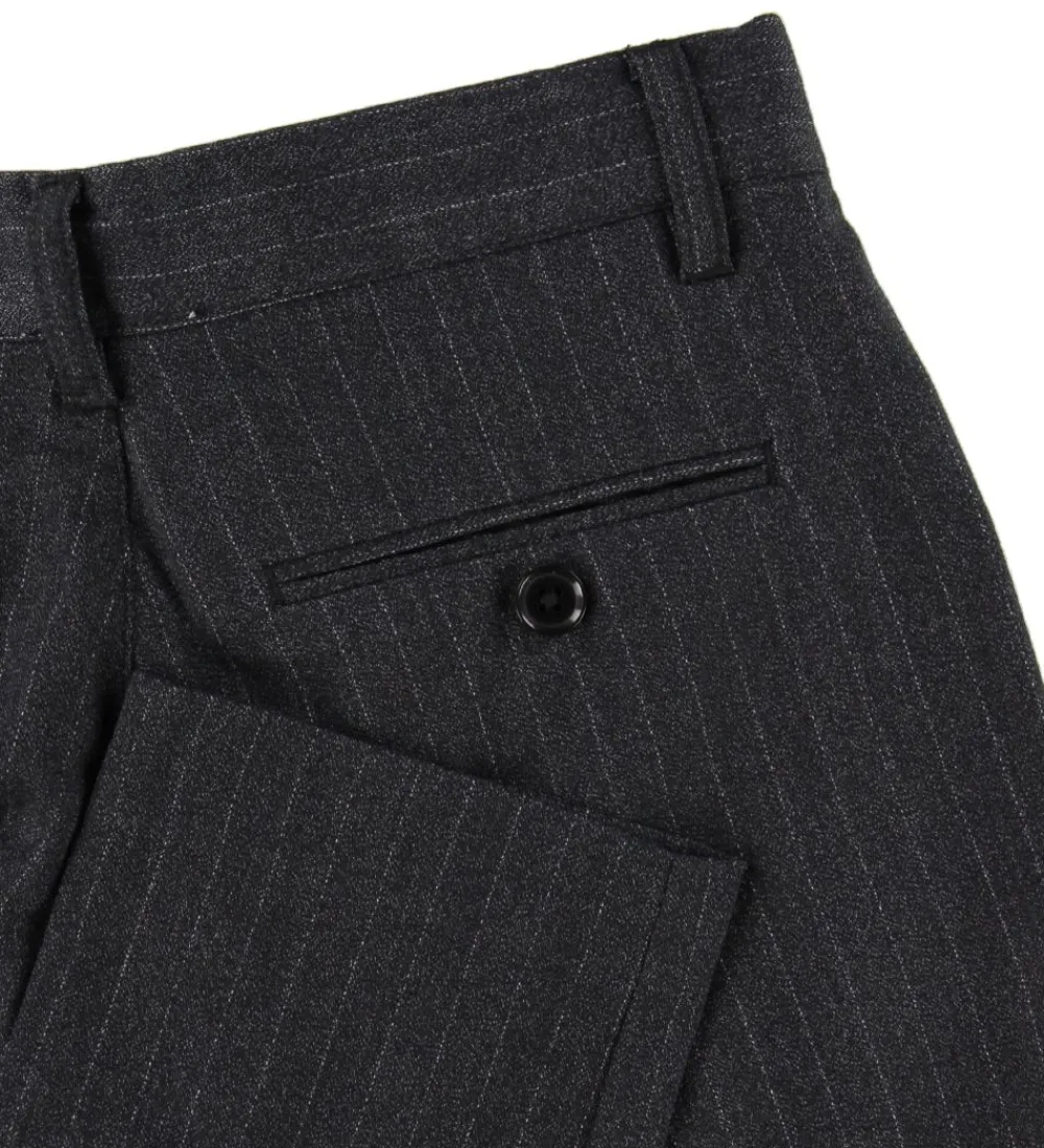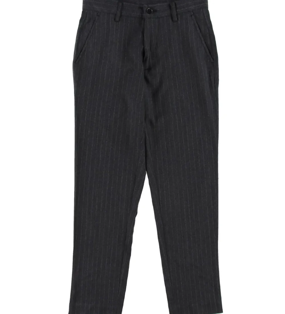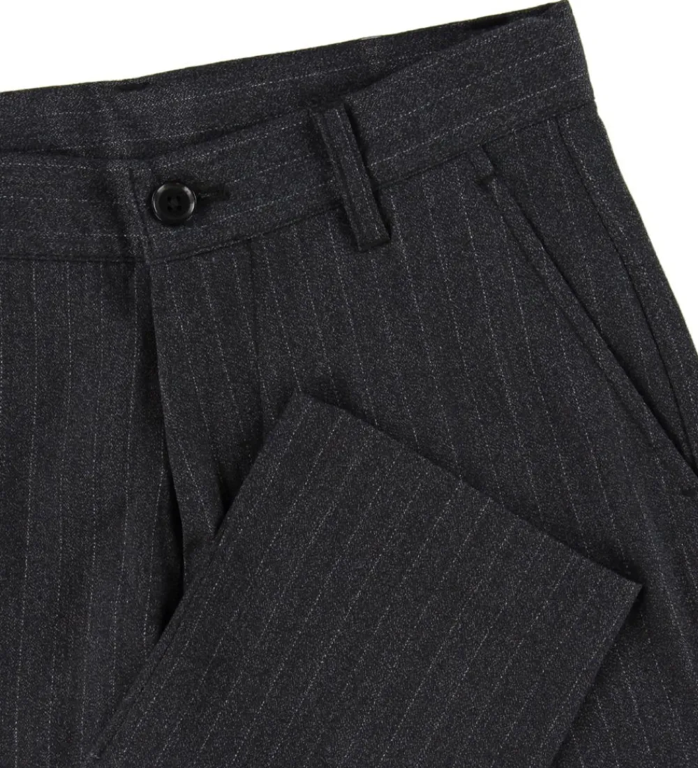 Lækre Grunt bukser i mørkegrå med et allover print af hvide, lodrette striber.