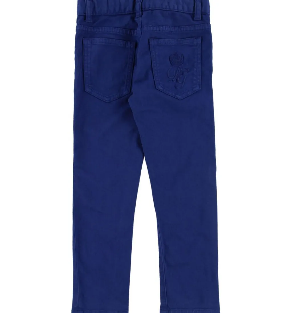 Lækre Dolce & Gabbana bukser i mørkeblå med broderede DG-initialer samt mærkets velkendte krone på højre baglomme.