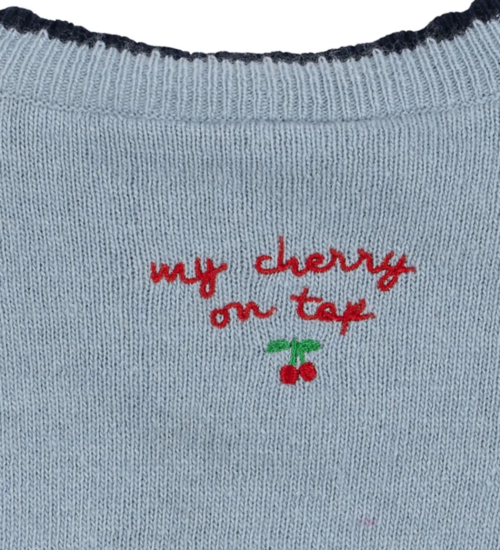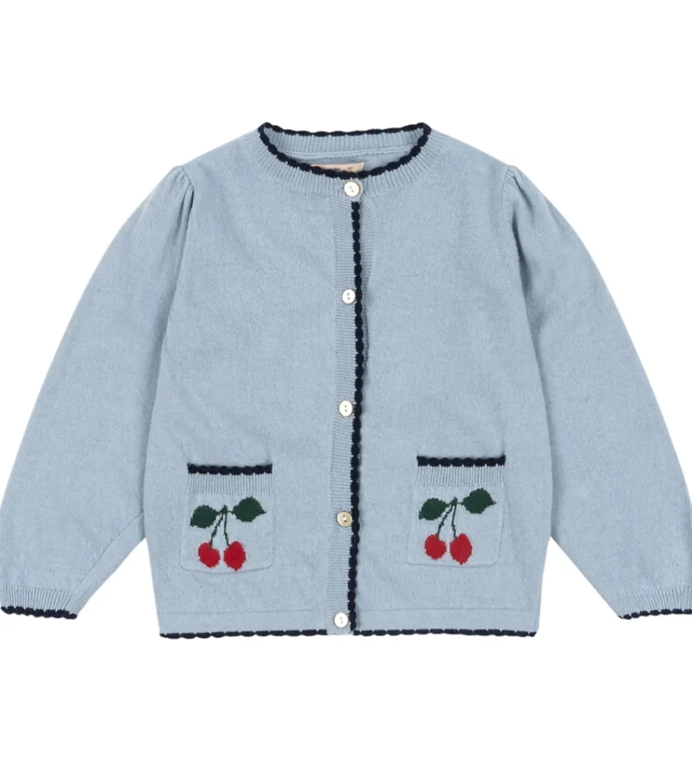 Charmerende Konges Sløjd cardigan strikket i lyseblå med fine detaljer.