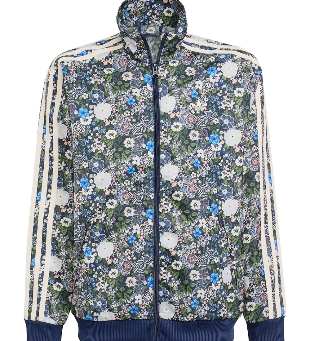 Fin adidas Originals cardigan i navy med et allover blomsterprint i hvid, rosa og mørkegrøn samt blå nuancer.