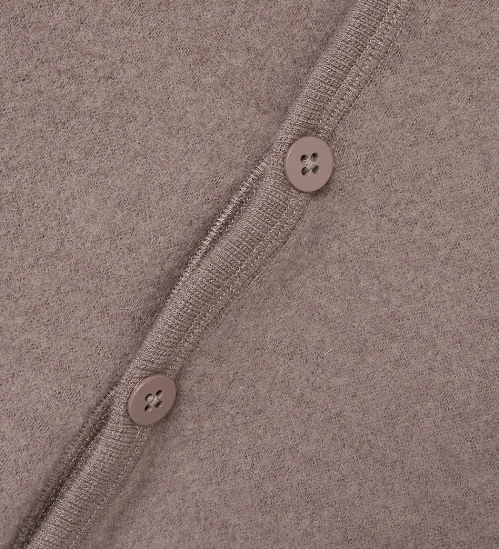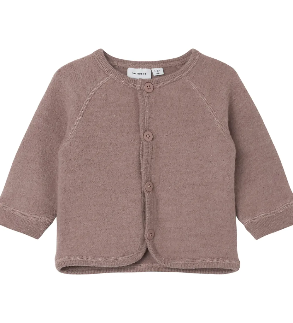 Flot Name It cardigan i en mørkerosa nuance med lange ærmer og rund halsudskæring. Name It cardiganen har en enkel knaplukning og ribkanter ved hals og ærmer. Den ensartede struktur giver et stilrent udtryk, der passer til mange lejligheder.