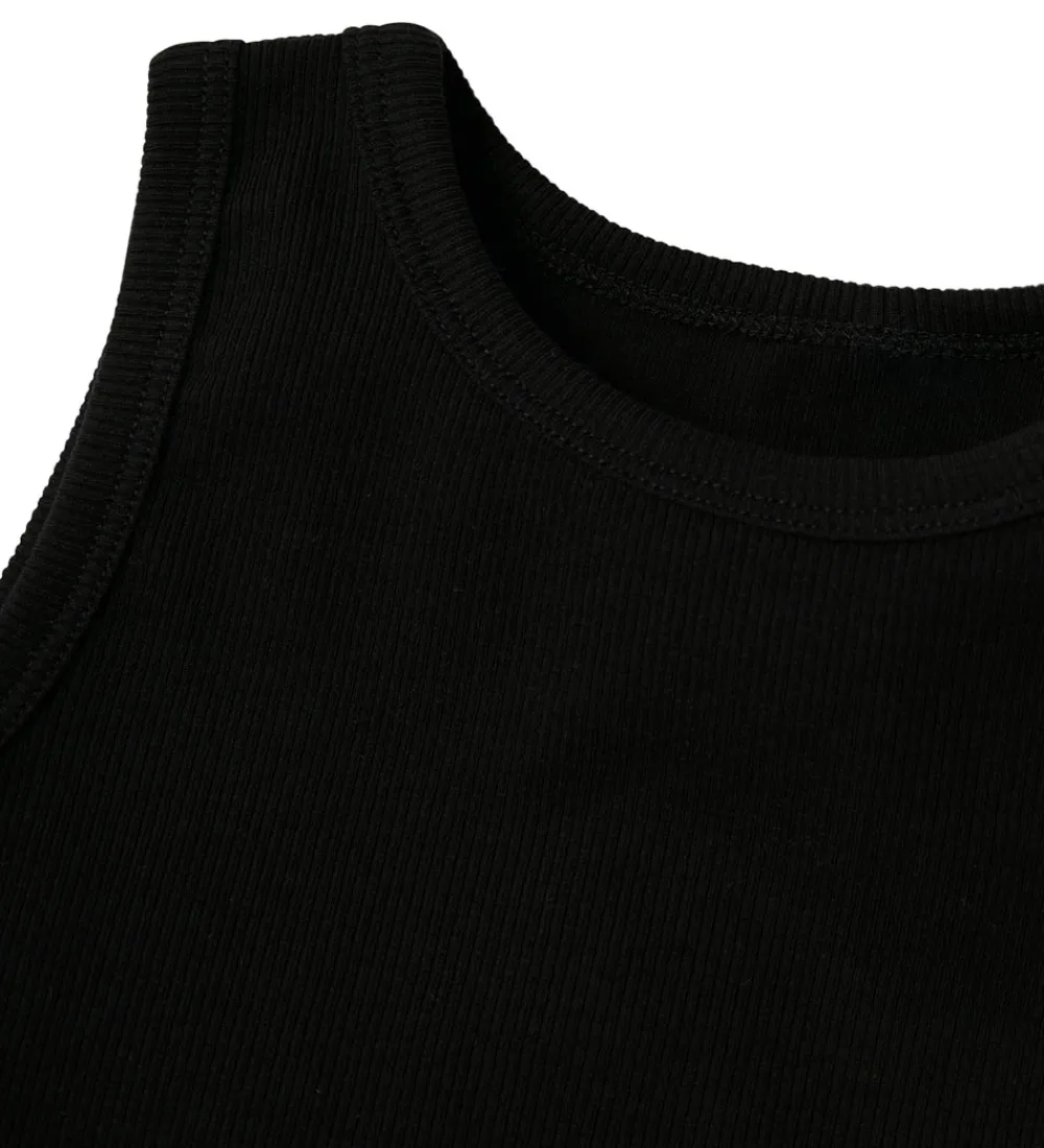 Skøn Name It top i ensfarvet sort med ribstruktur.