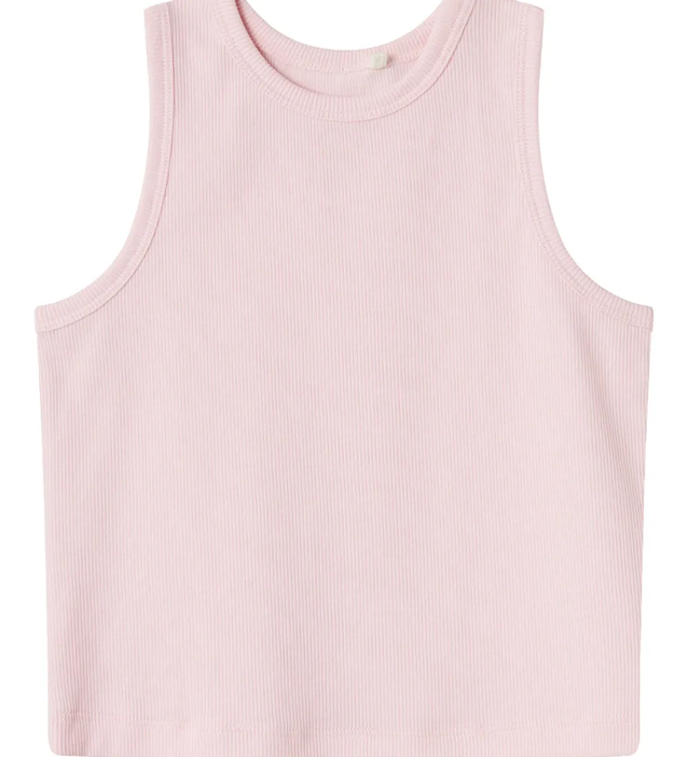 Skøn Name It top i ensfarvet lys rosa med ribstruktur.