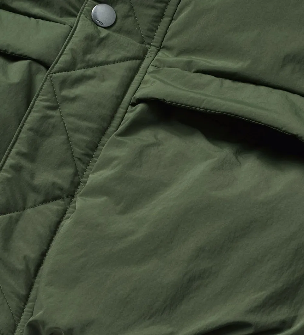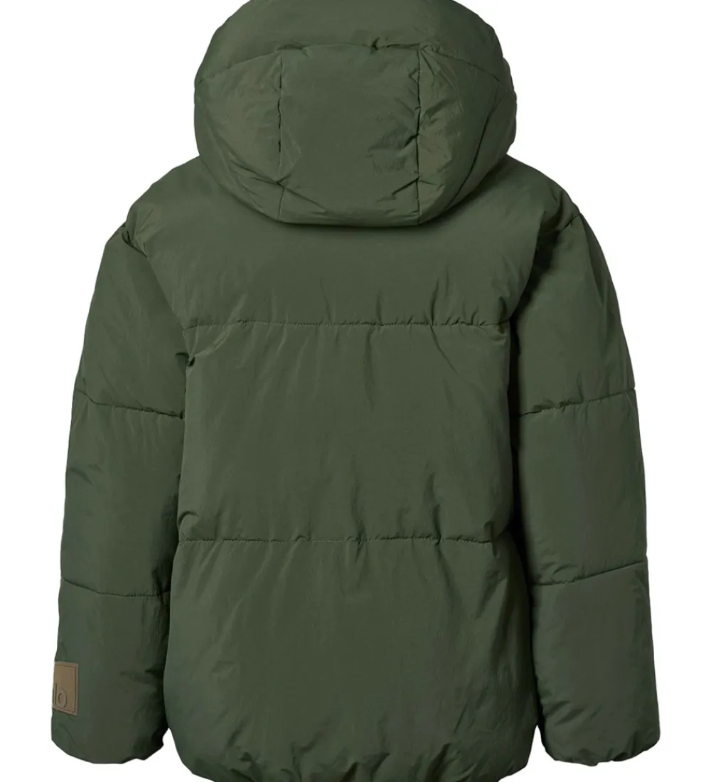 Fin Molo dynejakke i mørkegrøn med vandrette syninger.