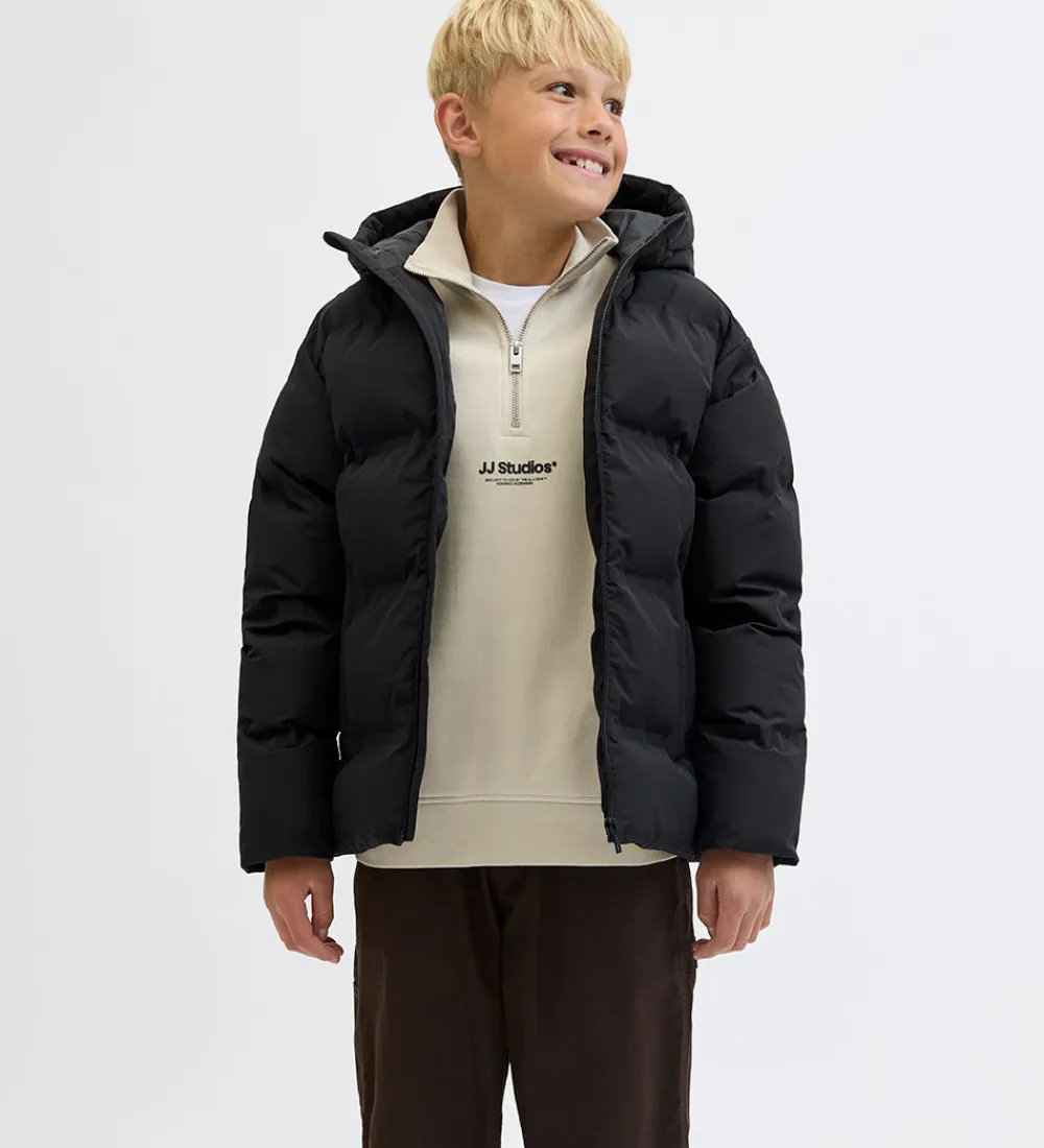 Flot Jack & Jones dynejakke i sort med en indpræget, quiltet struktur.