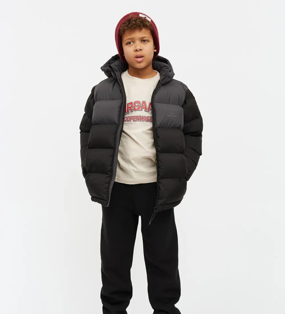 Fin Mads Nørgaard dynejakke i koksgrå med vandrette syninger.