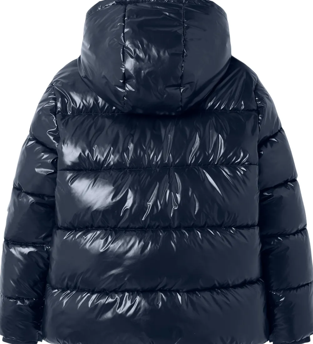 Smart LMTD dynejakke i ensfarvet navy med en skinnende overflade.