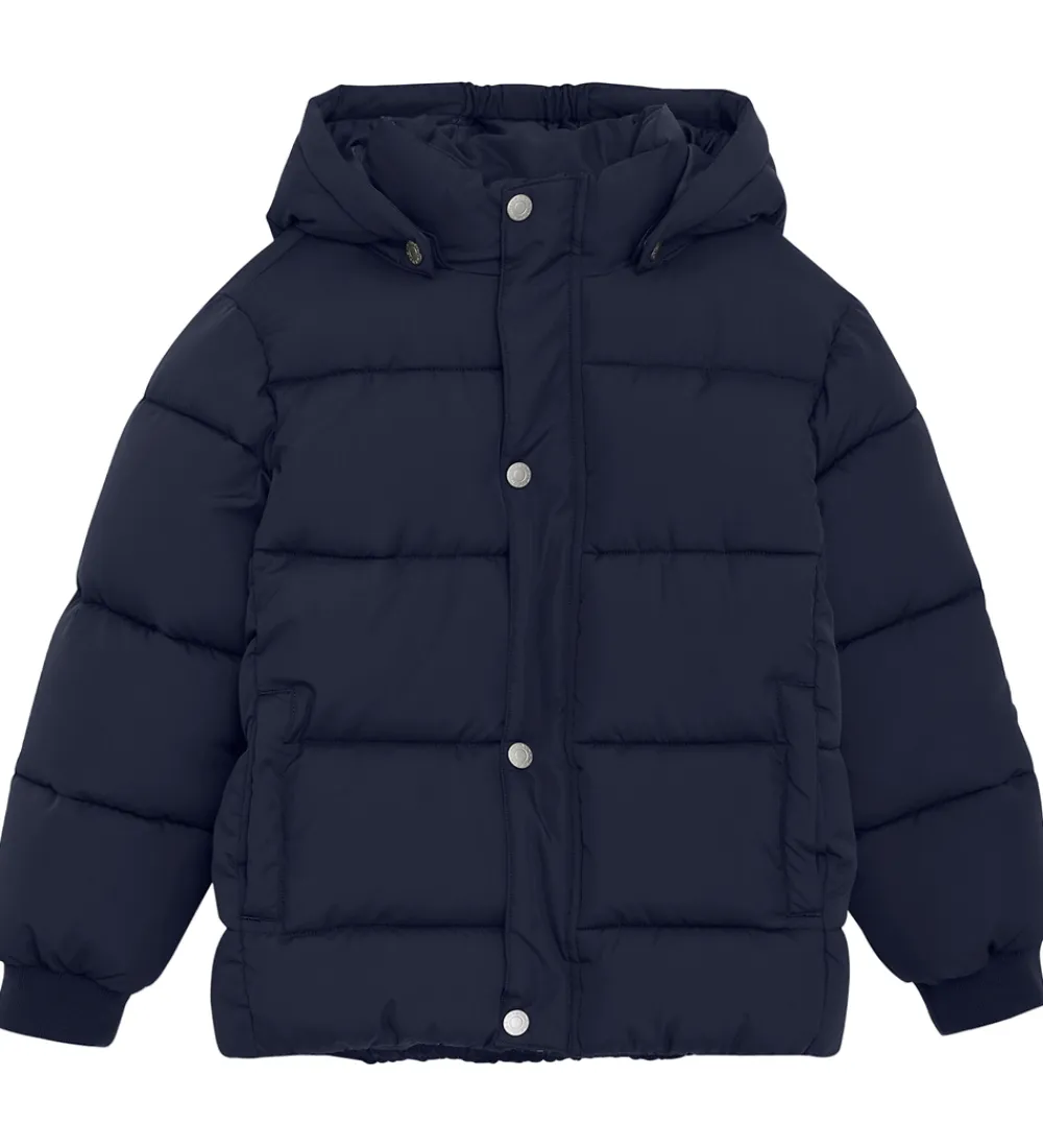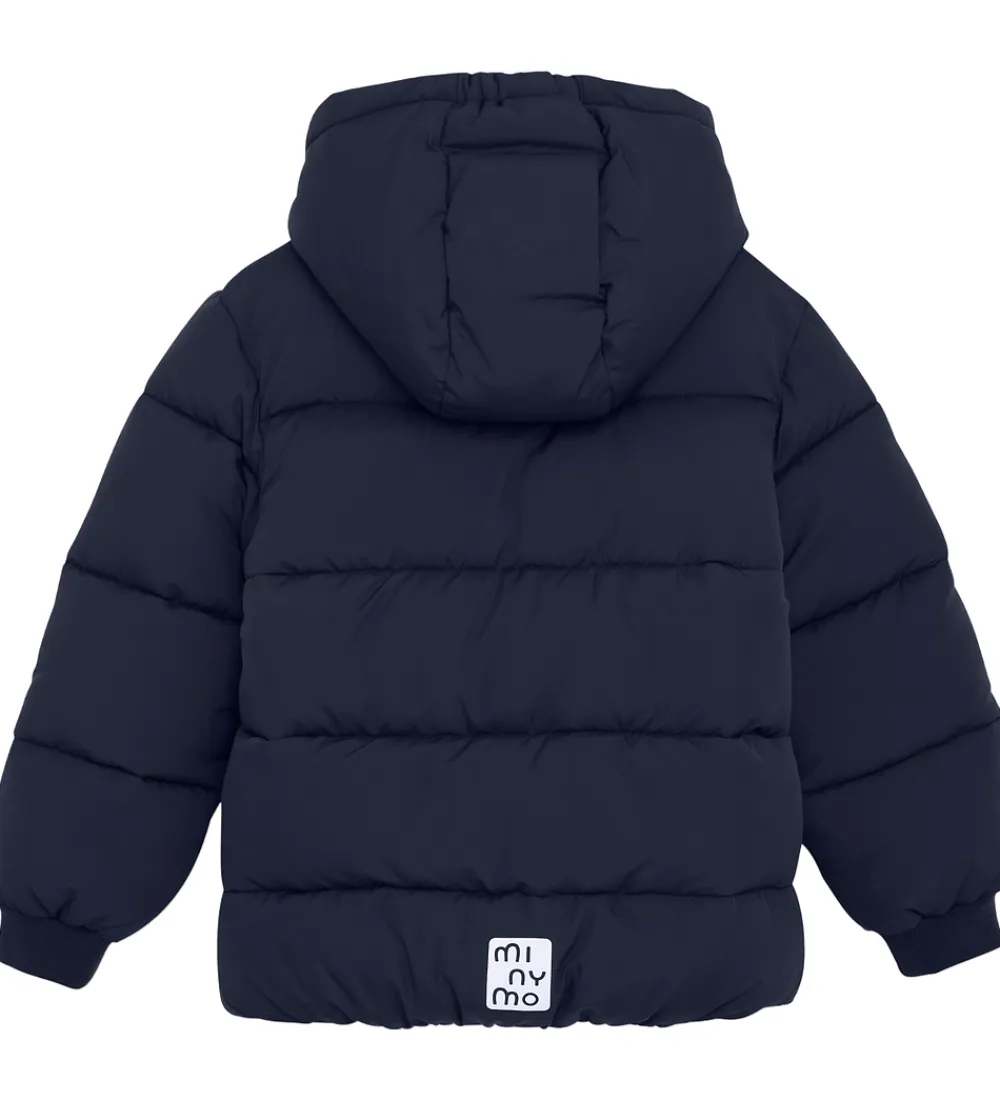 Lækker Minymo dynejakke i ensfarvet navyblå og med velplacerede refleks-logoprint.