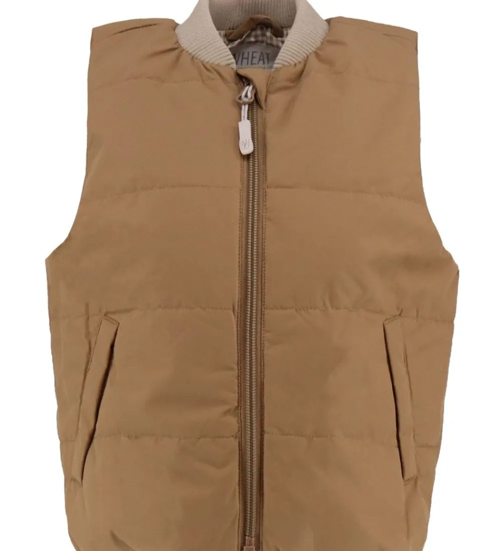 Lækker Wheat dynevest i brun med en beigefarvet kant i halsåbningen.