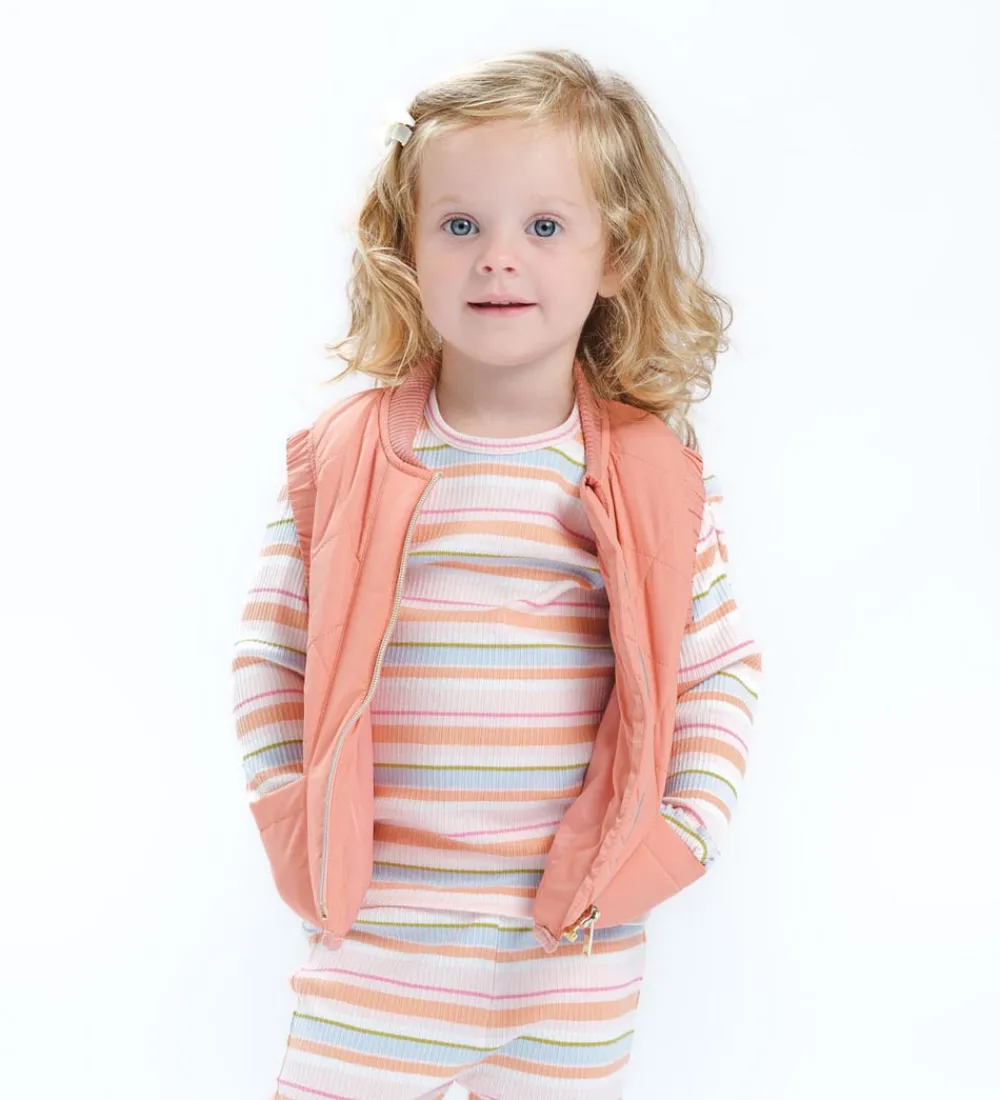 Sød Hust and Claire dynevest i ensfarvet koral.