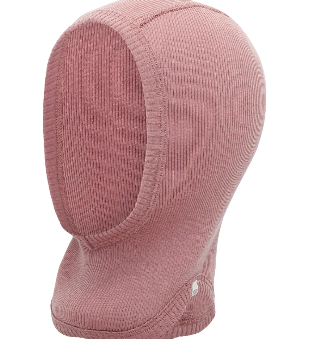 Sød Minimalisma elefanthue i rosa med ribstruktur, og den er lavet af blødt merinould. Minimalisma elefanthuen har en rund hovedform med en split-effekt i bunden, som giver et godt fit, og den består af et enkelt lag.