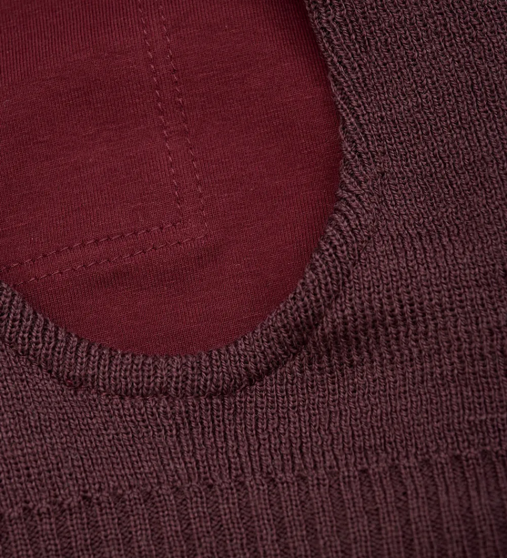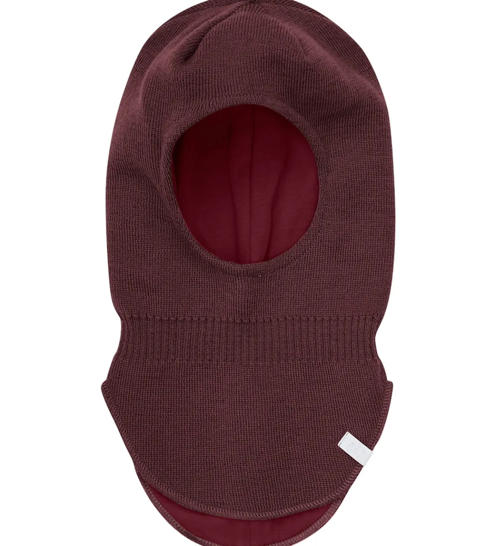 Lækker Minymo elefanthue i mørkelilla strik med en lille, refleks-logoapplikation ved halsen fortil.