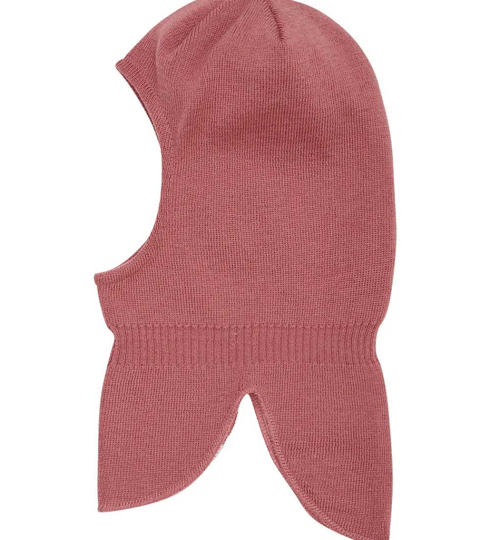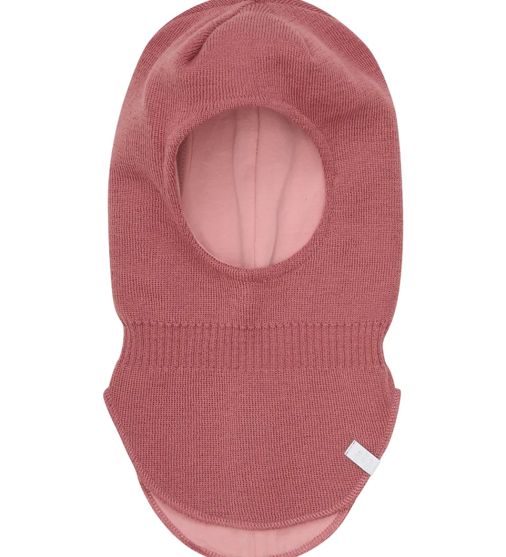 Lækker Minymo elefanthue i rosa strik med en lille, refleks-logoapplikation ved halsen fortil.