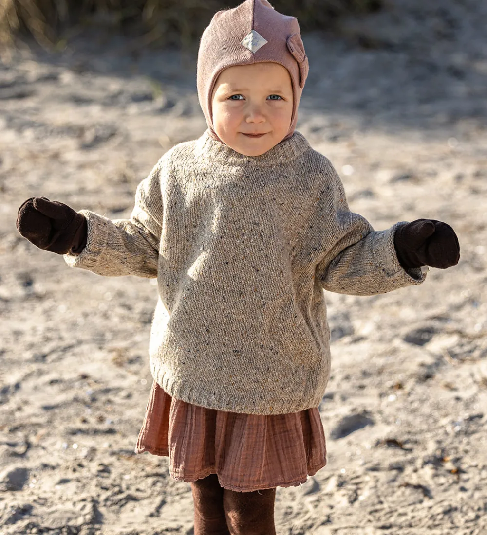 Racing Kids elefanthuen har en rund hovedform, og i venstre side sidder der en dekorativ sløjfe. Elefanthuen består af to lag, hvoraf det udvendige er i en lækker uldblanding, mens det indvendige er lavet af blødt bomuldsjersey. Ved ørerne er der praktiske vindstop, så ørerne er godt beskyttet mod vinden.