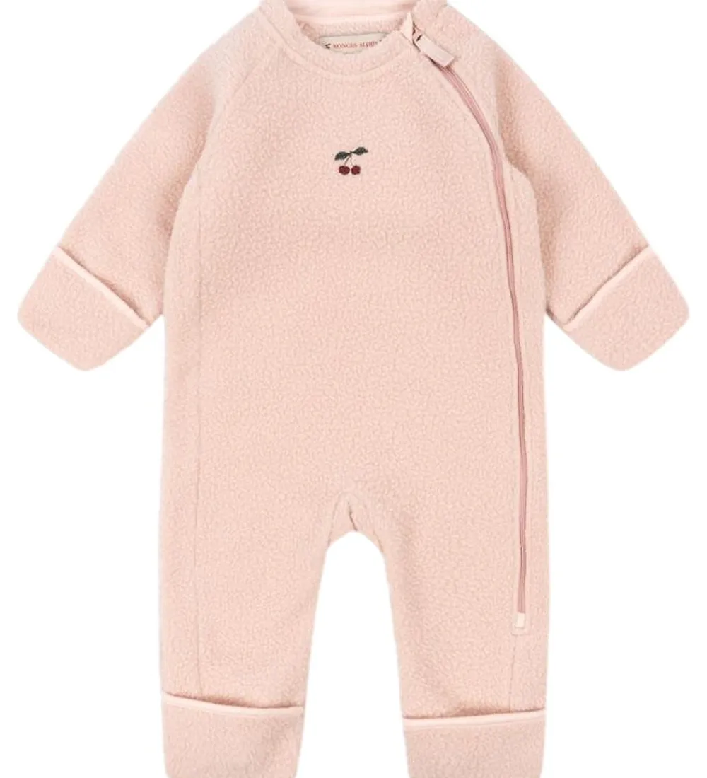Lækker Konges Sløjd fleecedragt i lyserosa teddyfleece og med et lille, broderet kirsebær.