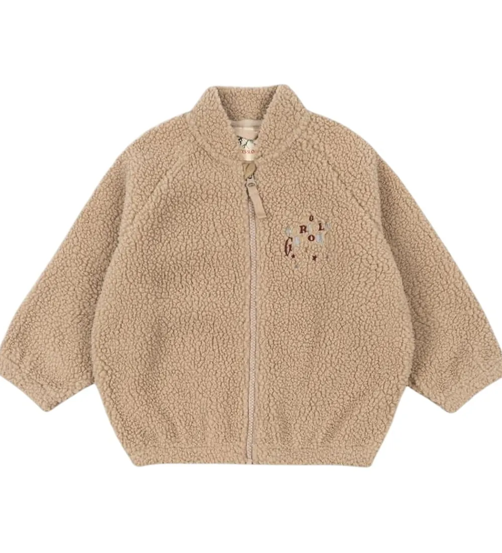 Attraktiv Konges Sløjd fleecejakke i en varm, beige nuance med et blødt og indbydende teddyfleece-materiale.