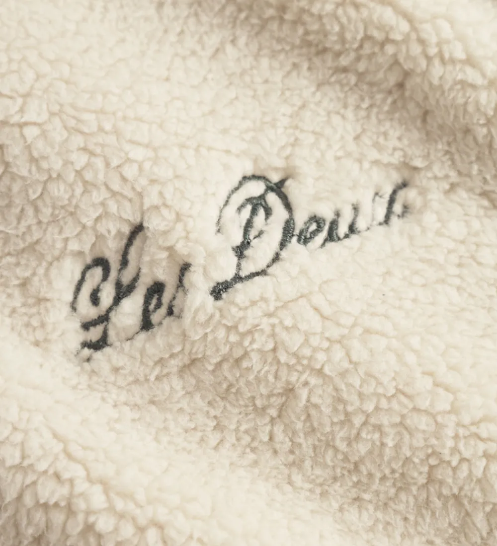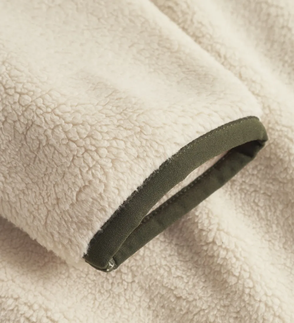 Elegant Les Deux fleecejakke i en blød, råhvid nuance med mørkegrønne kanter. Fleecejakken er lavet af lækkert teddyfleece, der giver et tidløst og stilrent udtryk.