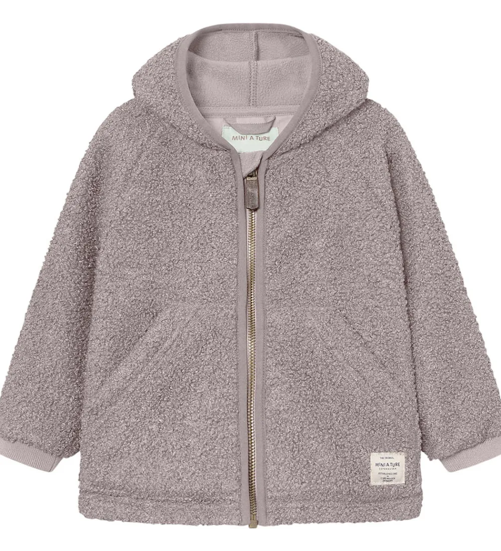 Fin Mini A Ture fleecejakke i støvet lilla teddyfleece.