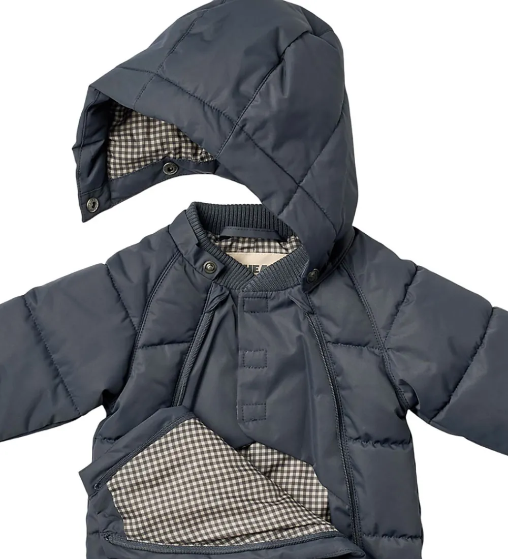 Lækker Wheat flyverdragt i navyblå. Flyverdragten har vandrette syninger som en dynejakke.