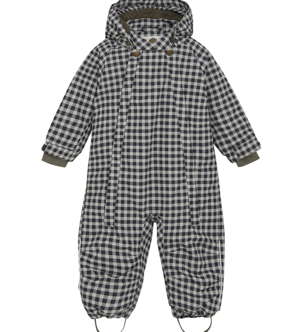 Dejlig En Fant flyverdragt med tern i mat sort, grå og beige.