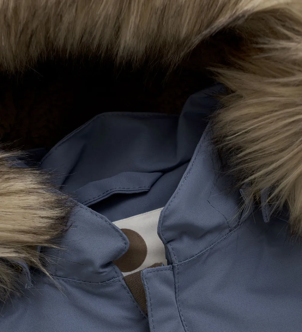 En Fant flyverdragten åbnes fortil ved hjælp af en skrå lynlås med en fleeceforet hagebeskytter og indvendig vindstolpe. Flyverdragten er justeret med en elastikindsats i ryggen.